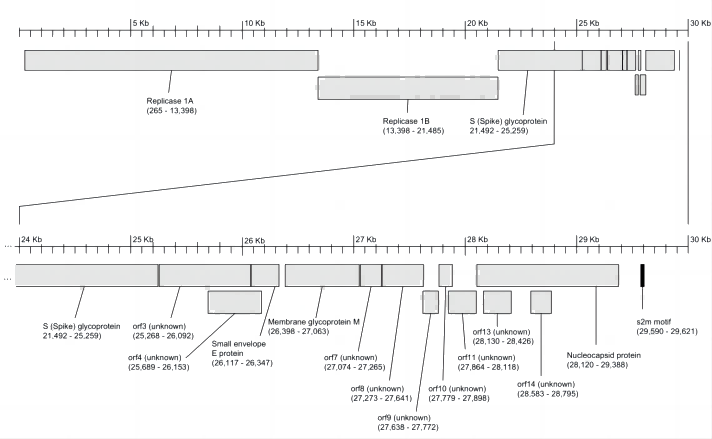 Severe acute respiratory syndrome (SARS)于2003年二月在亞洲第一次被報(bào)道,繼而傳播到全球十幾個(gè)國家,SARS屬于一種冠狀病毒,是一類具有囊膜、基因組為線性單股正鏈的RNA病毒,對應(yīng)的結(jié)構(gòu)示意圖如下:
