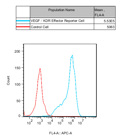Figure 4. Inhibition of rhVEGFA Induced Reporter Activity by KDR Inhibitor in VEGF(KDR) Effector Reporter Cell(C1C42). Inhibition of rhVEGFA Induced Reporter Activity by VEGFA Neutralization Ab in VEGF(KDR) Effector Reporter Cell(C1C42). |