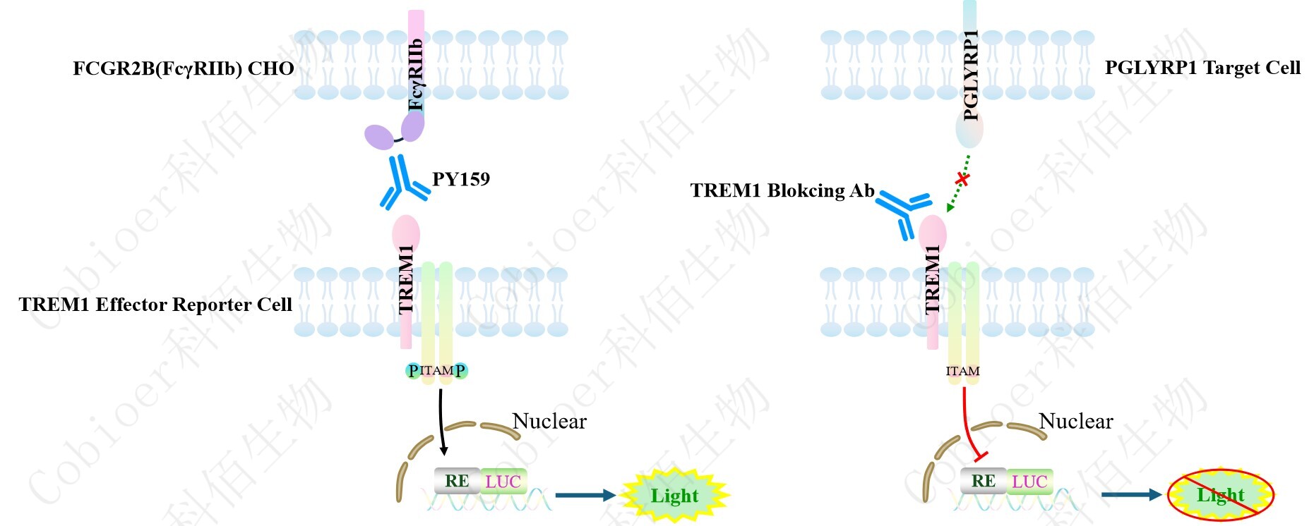 TREM1 Effector Reporter 報告基因藥靶模型很好的模擬了體內(nèi) TREM1 的信號轉(zhuǎn)導(dǎo)過程, 原理見下圖 所示。![]() Figure 1. TREM1 Effector Reporter 細胞模型原理圖 |