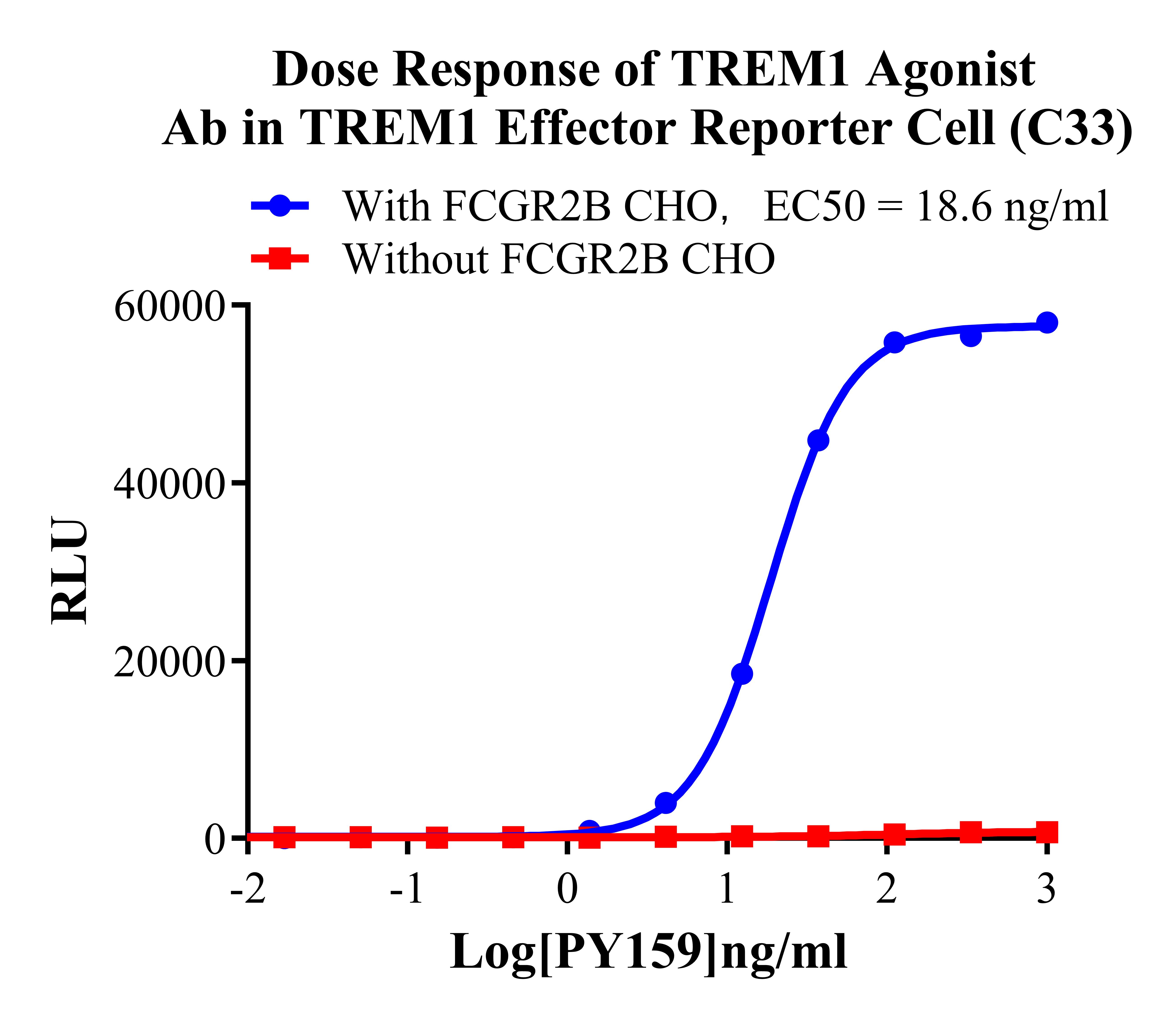 Figure 3. Dose Response of TREM1 Agonist Ab in TREM1 Effector Reporter Cell(C33). |
