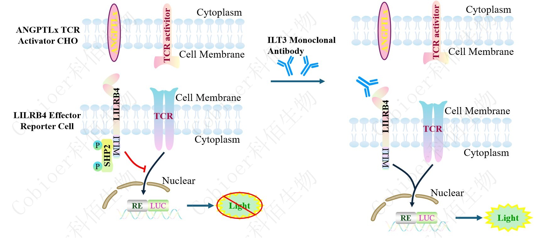 LILRB4 Effector Reporter Cell 報(bào)告基因藥靶模型很好的模擬了體內(nèi) LILRB4 的信號(hào)轉(zhuǎn) 導(dǎo)過程,原理見下圖所示。![]() ![]() Figure 1. LILRB4 Effector Reporter Cell 模型原理圖