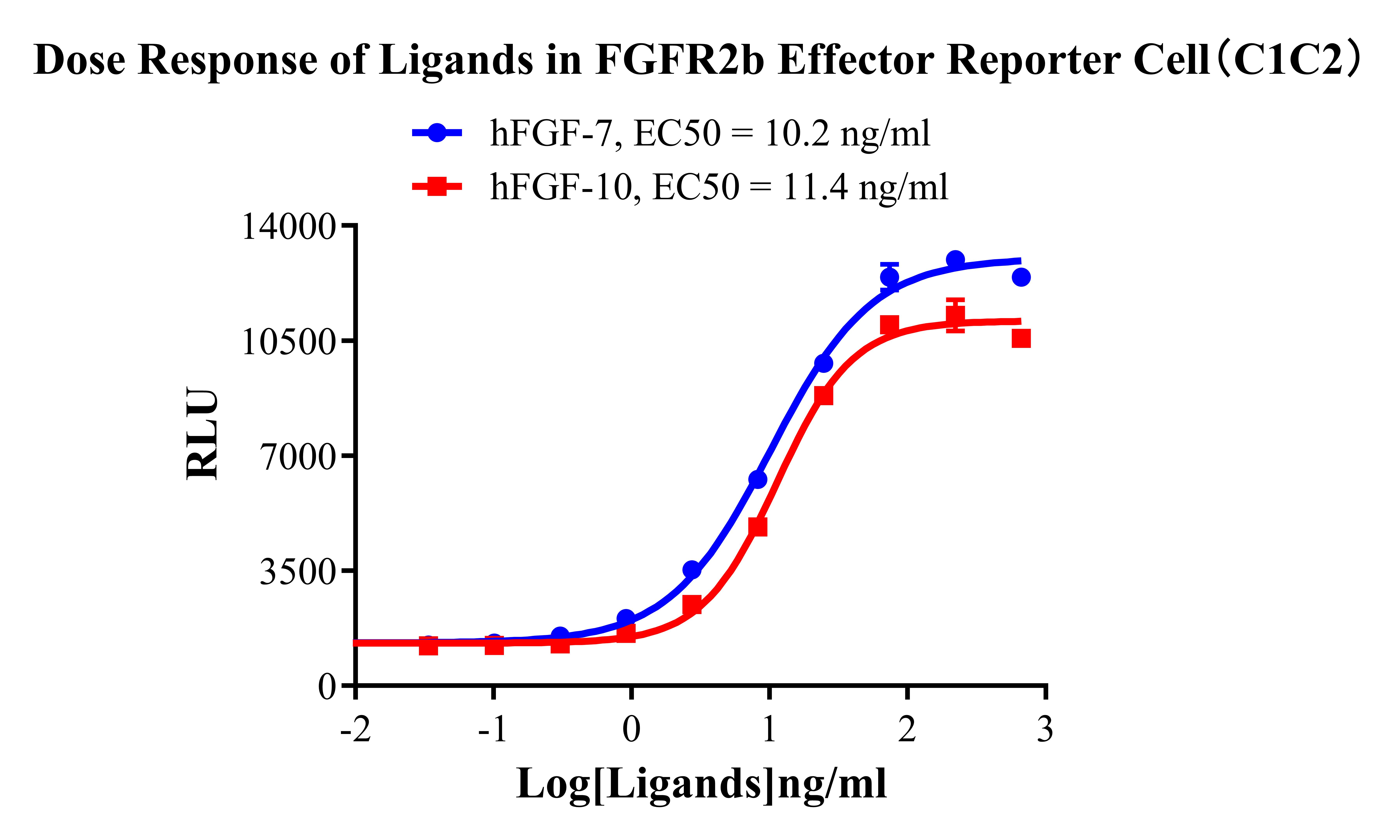 Figure 2. Dose Response of Ligands in FGFR2b Effector Reporter Cell (C1C2). |