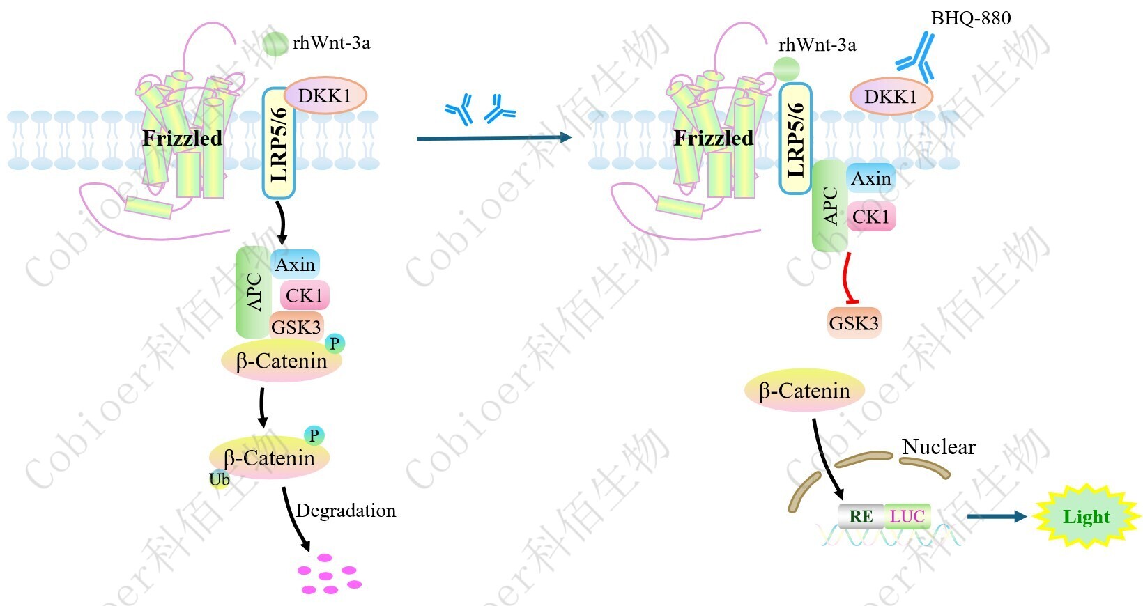 DKK1 Effector Reporter Cell 報(bào)告基因藥靶模型很好的模擬了體內(nèi) WNT 的信號(hào)轉(zhuǎn)導(dǎo)過程,原理見下圖所示。![]() Figure 1. DKK1 Effector Reporter Cell 模型原理圖 |