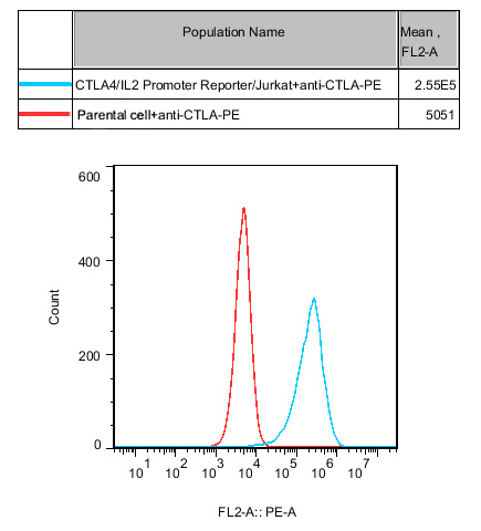 Figure 2. Recombinant CTLA4/IL2 Promoter Reporter/Jurkat stably expressing CTLA4.