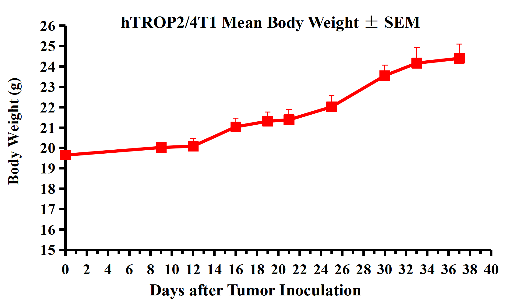 Figure 2. hTROP2/4T1 Mean Body Weight ± SEM.