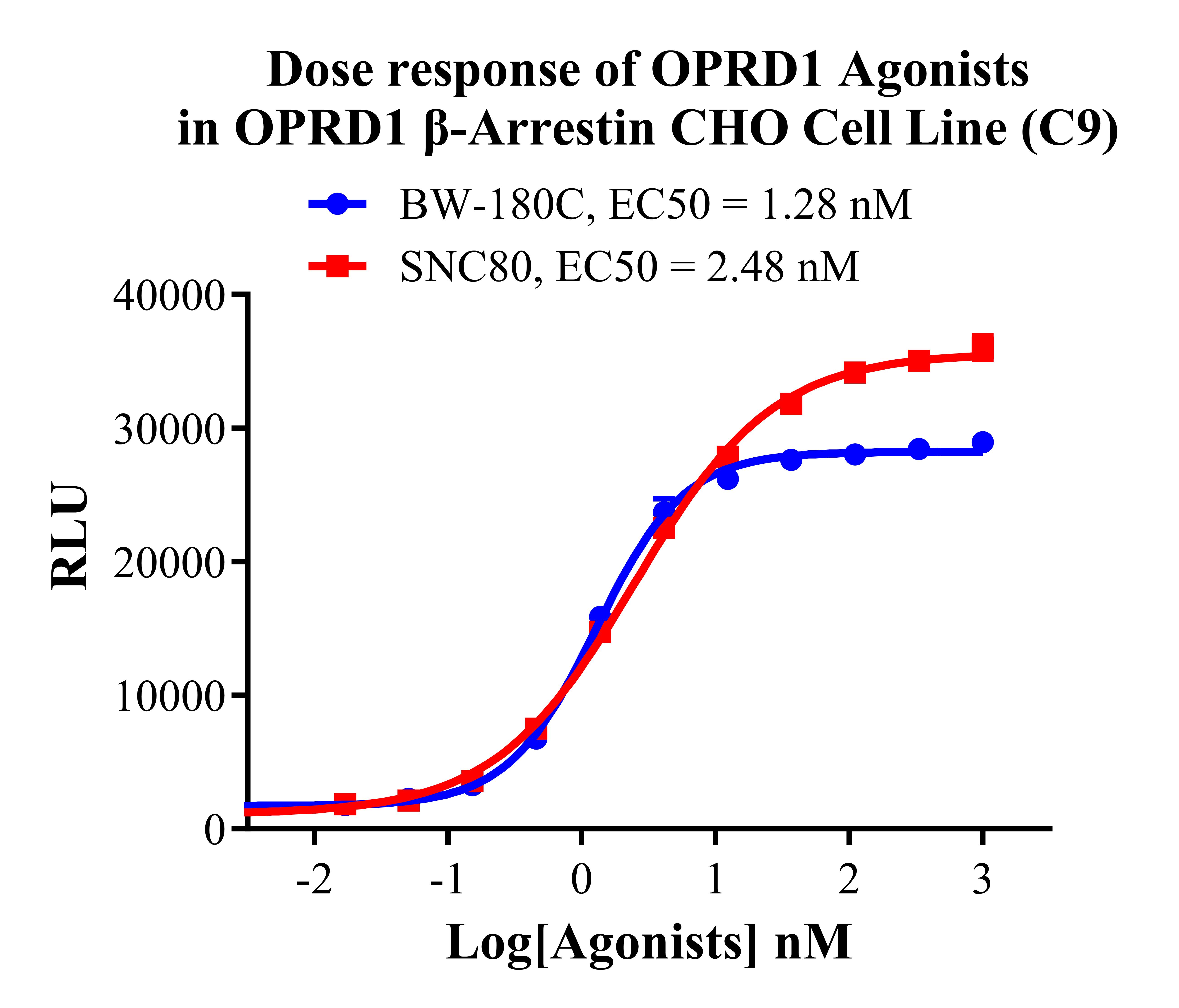 Figure 3. Dose response of OPRD1 Agonists in OPRD1 β-Arrestin CHO Cell Line (C9). |