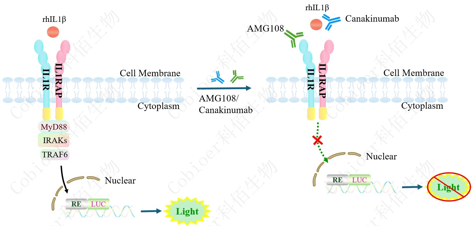 ![]() Figure 1. IL1 Effector Reporter Cell 細(xì)胞模型原理圖 |