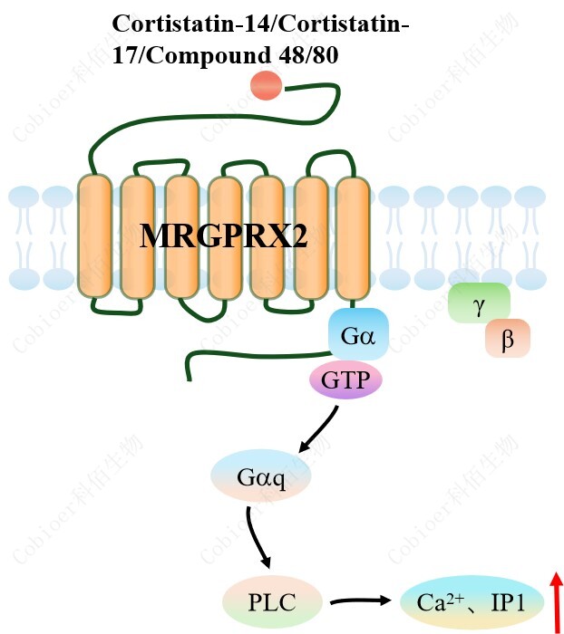 MRGPRX2 Gα15 HEK293 細胞藥靶模型很好的模擬了體內(nèi) MRGPRX2&Gα15 的信號轉(zhuǎn) 導(dǎo)過程,原理見圖所示。