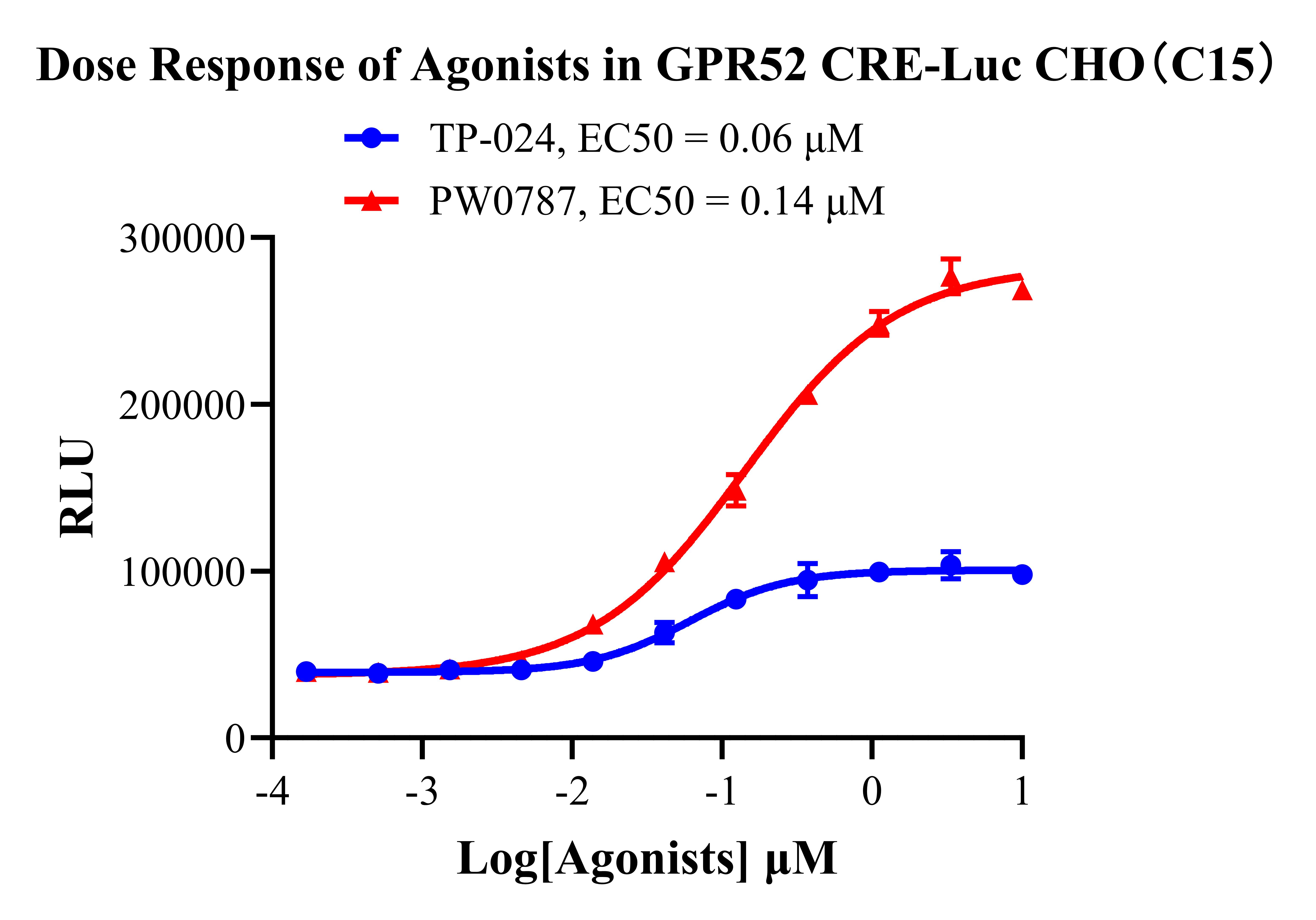 GPR52 CRE-Luc CHO 報告基因藥靶模型很好的模擬了體內(nèi) GPR52 的信號轉(zhuǎn)導過程, 原理見下圖所示。![]() Figure 1. GPR52 CRE-Luc CHO 細胞模型原理圖 |