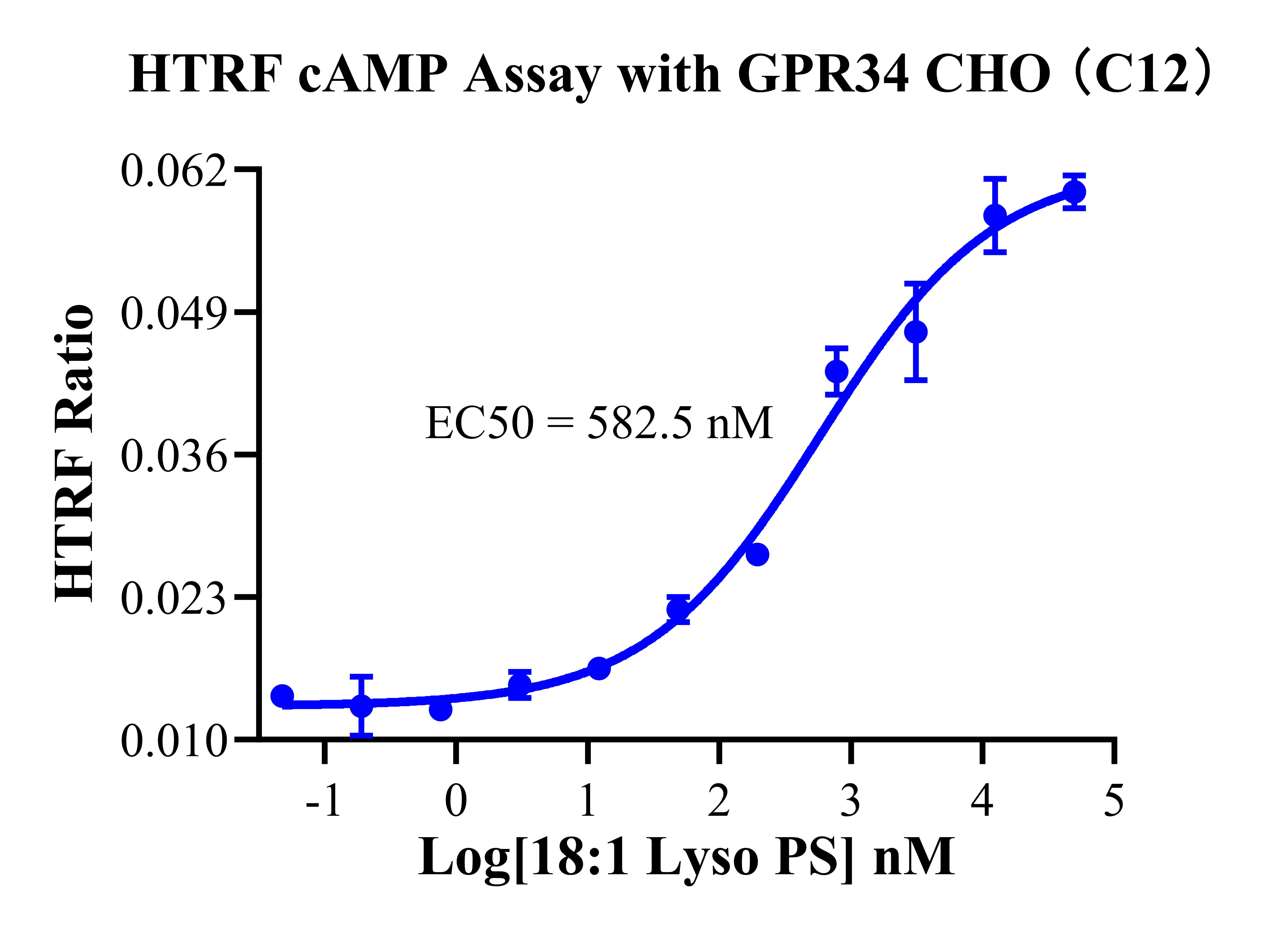 cAMP 在 G 蛋白偶聯受體(GPCR)信號轉導中是一種關鍵的第二信使。當配體結合 到 GPCR,構象發(fā)生變化,激活受體接著激活 G 蛋白,Gi 的激活導致腺苷酸環(huán)化酶調控 cAMP 的下調。GPR34 CHO 藥靶模型很好的模擬了體內 GPR34 的信號轉導過程,原理見下圖所示。![]() Figure 1. GPR34 CHO 細胞模型原理圖 |