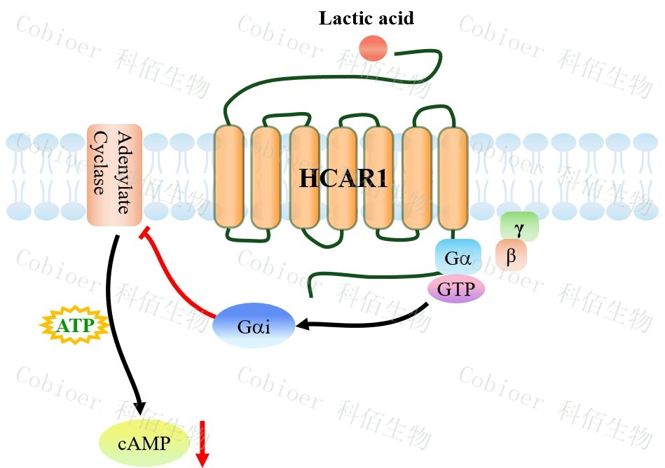 HCAR1(羥基羧酸受體 1),亦稱 GPR81,是一種分布于脂肪組織、免疫細(xì)胞(如巨 噬細(xì)胞)、神經(jīng)元及肝細(xì)胞的 G 蛋白偶聯(lián)受體(GPCR),屬于羥基羧酸受體亞家族,其 內(nèi)源性配體為乳酸(L-lactate);該受體通過(guò)偶聯(lián) Gi/o 蛋白,抑制腺苷酸環(huán)化酶,降低 cAMP 水平,從而抑制 PKA 信號(hào),同時(shí)激活β-arrestin 通路。其核心功能包括,在脂肪組織 中抑制脂解、促進(jìn)脂質(zhì)儲(chǔ)存,在免疫細(xì)胞中調(diào)控炎癥反應(yīng)(如抑制促炎因子釋放、促進(jìn) M2 型巨噬細(xì)胞極化),在神經(jīng)系統(tǒng)中參與乳酸介導(dǎo)的神經(jīng)保護(hù)及能量穩(wěn)態(tài)調(diào)節(jié);其信號(hào) 異常與代謝性疾?。ㄈ绶逝?、胰島素抵抗)、神經(jīng)炎癥疾?。ǘ喟l(fā)性硬化、腦缺血)及腫 瘤微環(huán)境重塑(乳酸介導(dǎo)的免疫逃逸)密切相關(guān),尤其在腫瘤組織中高表達(dá)的 HCAR1 可 通過(guò)抑制抗腫瘤免疫應(yīng)答促進(jìn)進(jìn)展,成為代謝-免疫交叉治療的潛在靶點(diǎn)。 |