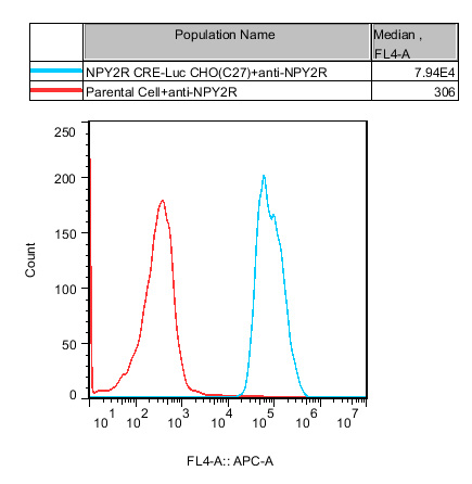 NPY2R CRE-Luc CHO 藥靶模型很好的模擬了體內(nèi) NPY2R 的信號(hào)轉(zhuǎn)導(dǎo)過(guò)程,原理見(jiàn)下圖所示。![]() Figure 1. NPY2R CRE-Luc CHO 細(xì)胞模型原理圖 |