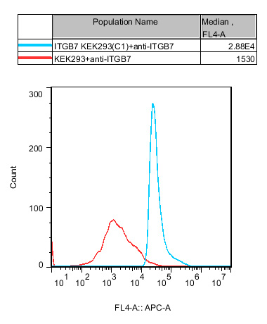 ![]() Figure 1. Recombinant ITGB7 HEK293 stably expressing ITGB7.