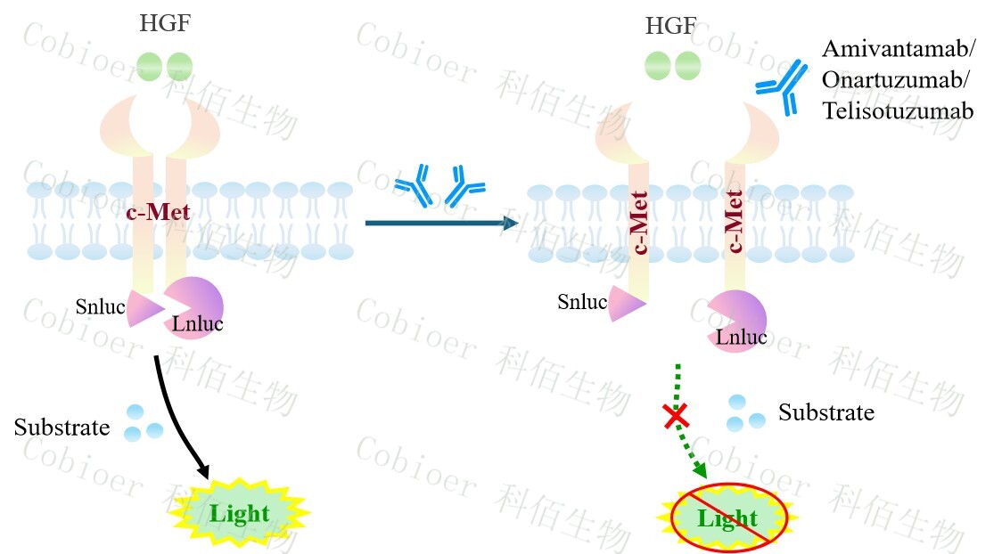 MET Dimerization CHO 報(bào)告基因藥靶模型很好的模擬了體內(nèi) MET 的信號(hào)轉(zhuǎn)導(dǎo)過(guò)程, 原理見(jiàn)下圖所示。![]() Figure 1. MET Dimerization CHO 細(xì)胞模型原理圖 |