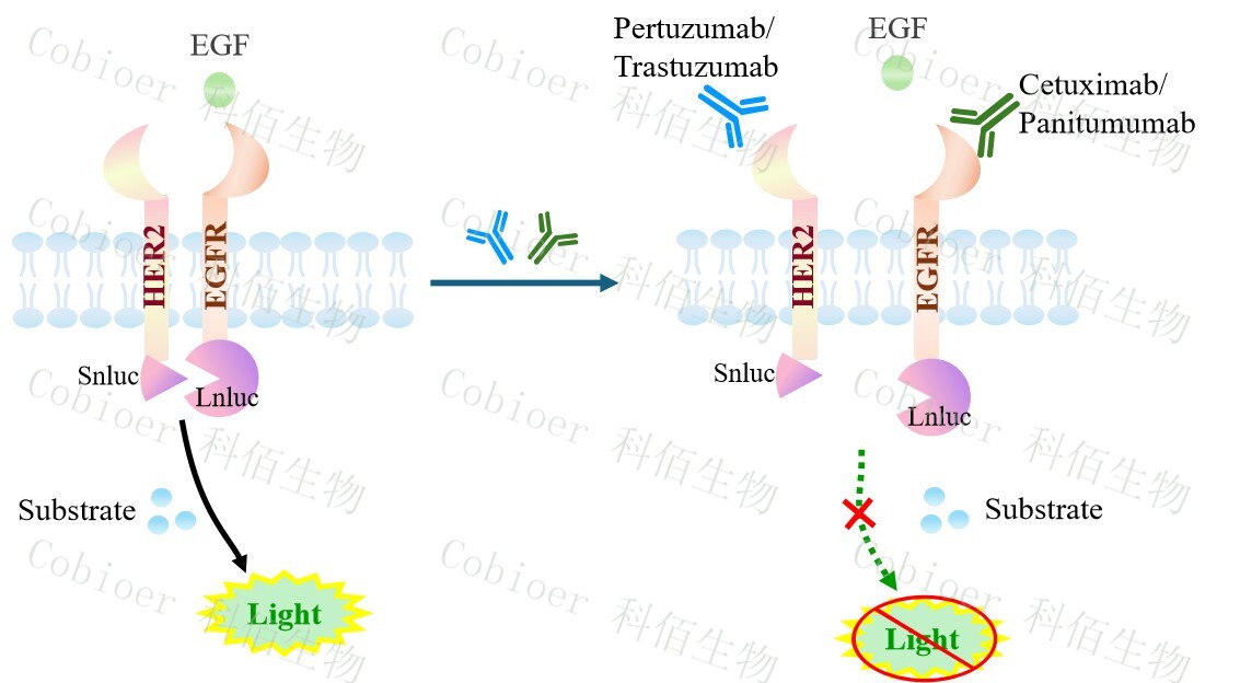 EGFR&ERBB2 Dimerization CHO 報(bào)告基因藥靶模型很好的模擬了體內(nèi) EGFR&ERBB2 的信號(hào)轉(zhuǎn)導(dǎo)過程,原理見下圖所示。![]() Figure 1. EGFR&ERBB2 Dimerization CHO 細(xì)胞模型原理圖 |