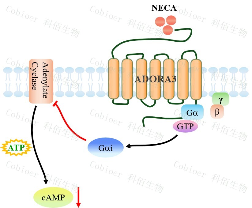 cAMP 在 G 蛋白偶聯(lián)受體(GPCR)信號轉(zhuǎn)導(dǎo)中是一種關(guān)鍵的第二信使。當(dāng)配體結(jié)合到 GPCR,構(gòu)象發(fā)生變化,激活受體接著激活 G 蛋白,Gi 的激活導(dǎo)致腺苷酸環(huán)化酶調(diào)控 cAMP 的下調(diào)。