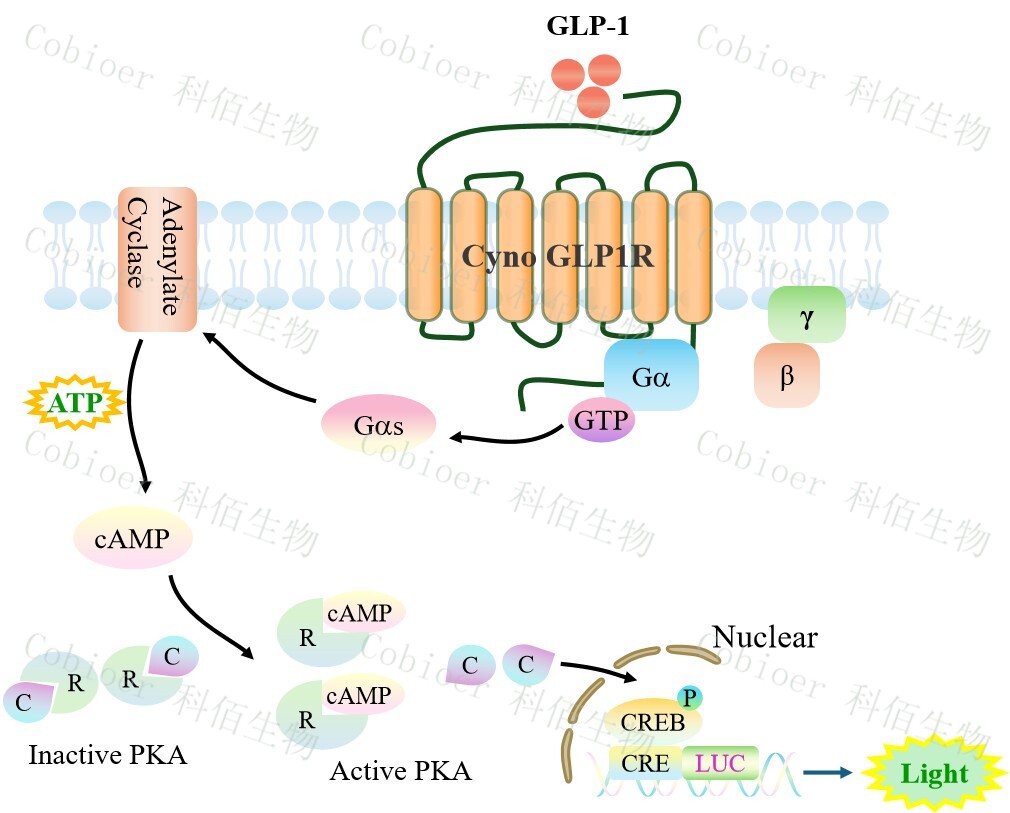 Figure 1. Cyno GLP1R CRE-Luc HEK293 細(xì)胞模型原理圖