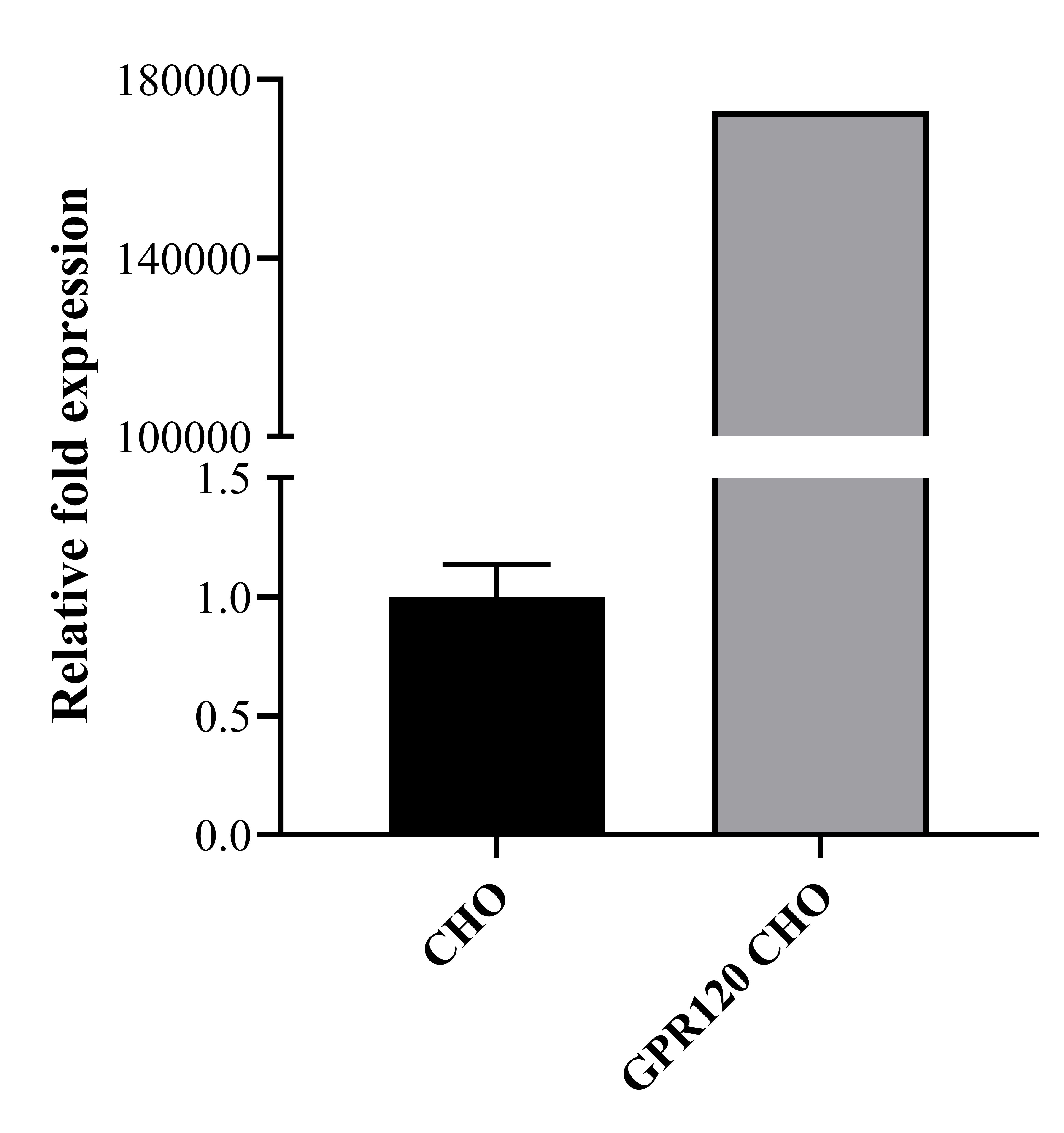 GPR120 與配體結(jié)合,導(dǎo)致 Gαq 亞基的激活,觸發(fā) PLC-γ,從而產(chǎn)生兩個(gè)第二信使: IP3 和 DAG,它們參與細(xì)胞內(nèi)鈣動(dòng)員。GPR120 CHO 細(xì)胞藥靶模型很好的模擬了體內(nèi) GPR120 的信號(hào)轉(zhuǎn)導(dǎo)過(guò)程,原理見(jiàn)下圖所示。![]() Figure 1. GPR120 CHO 細(xì)胞模型原理圖 |