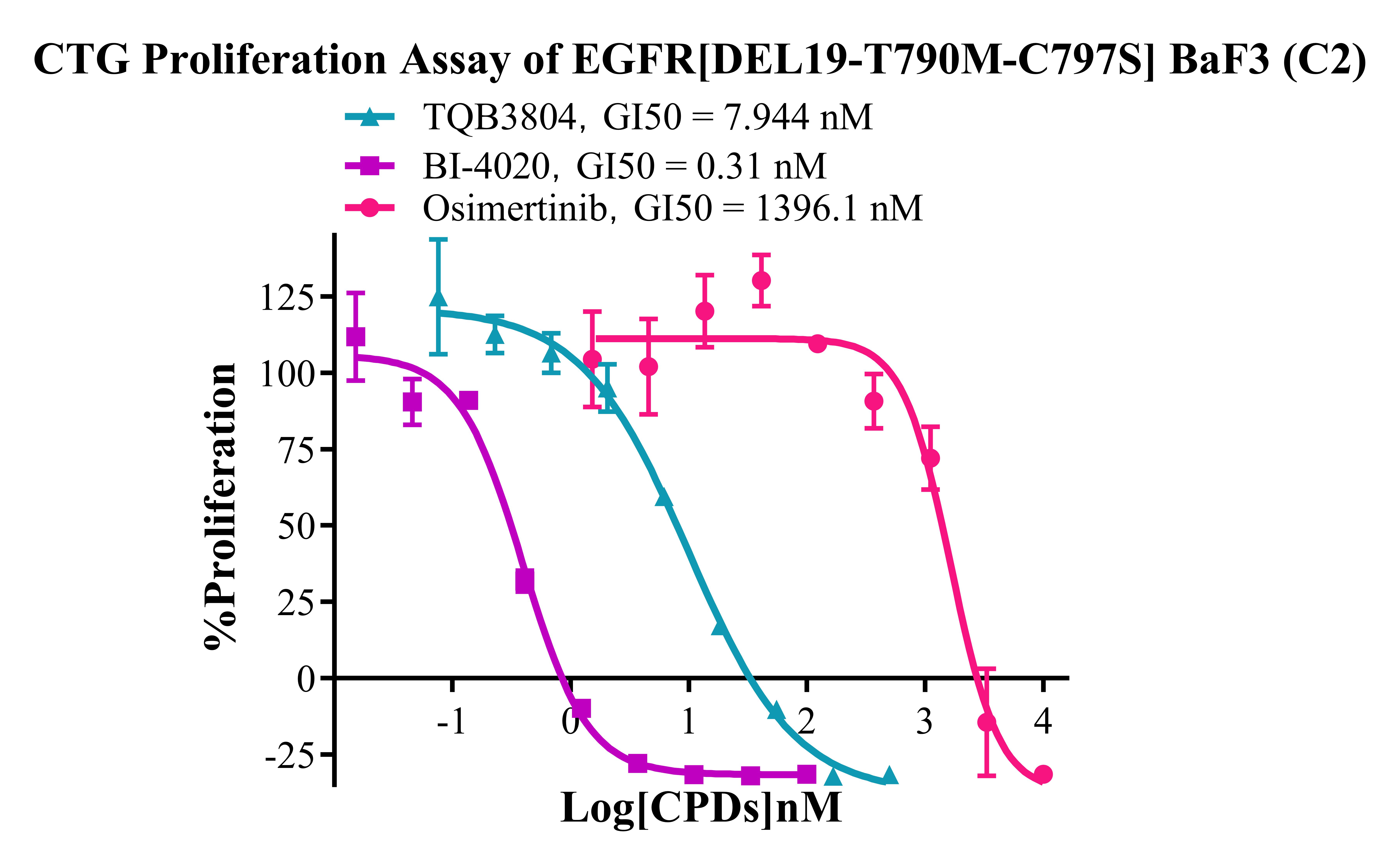 Figure 6. CTG Proliferation Assay of EGFR [DEL19-T790M] C797S BaF3 (C2). |