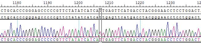 Figure 3. Sanger of BCR-ABL1 [E255V/T315I]/BaF3. |