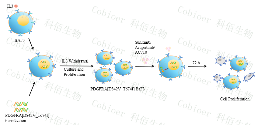 Figure 1. PDGFRA[D842V_T674I] BaF3 細(xì)胞的構(gòu)建原理圖 |