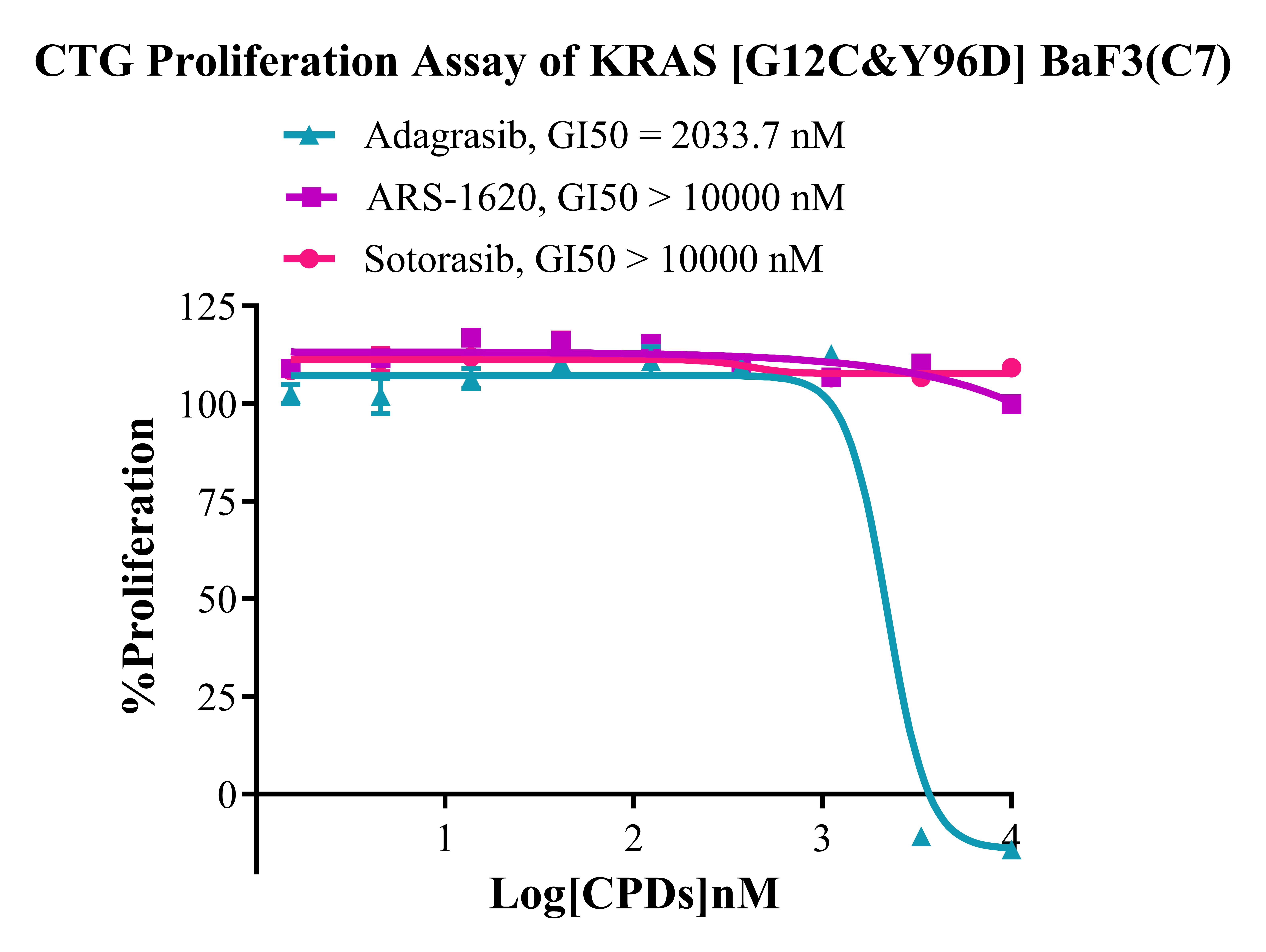 Figure 3. CTG Proliferation Assay of KRAS[G12C&Y96D] BaF3(C7). |