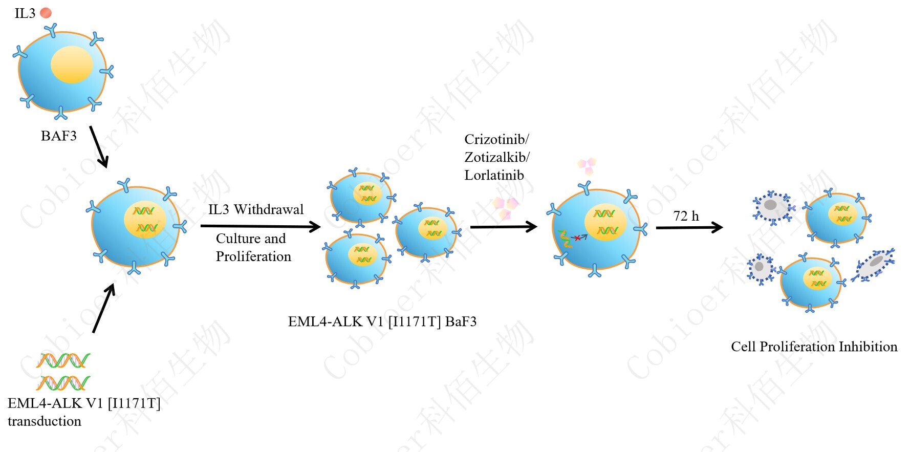 BaF3(小鼠原 B 細(xì)胞)的生長和增殖需要 IL-3 的維持。通過引入各種表達激酶的基因, 能作為 BaF3 的驅(qū)動基因,讓 BaF3 不再依賴 IL-3 而增殖,進而激酶基因成為 BaF3 增殖依 賴的驅(qū)動基因,用于評估小分子藥物對激酶的靶向抑制作用,原理及流程見下圖所示。