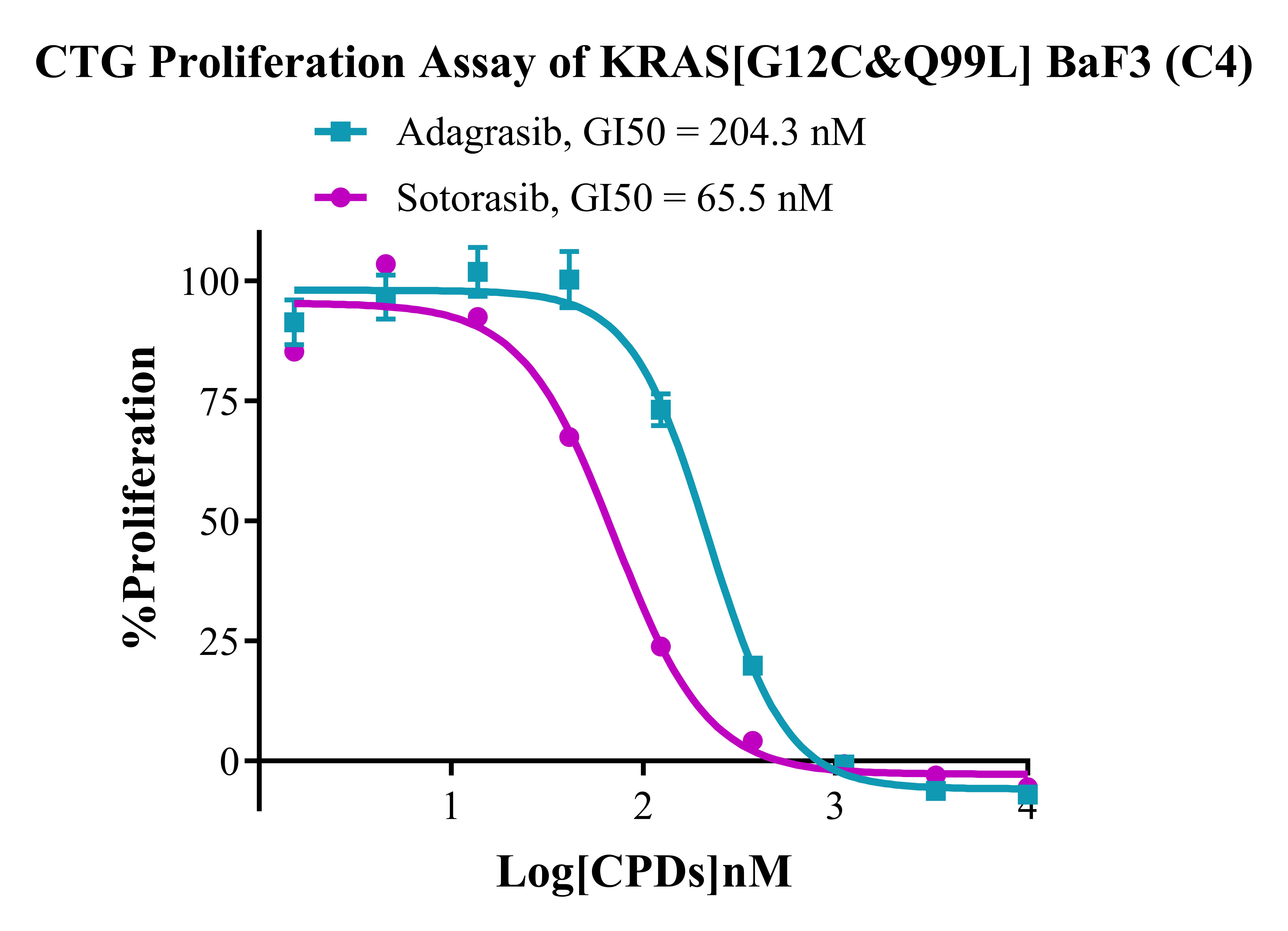 Figure 3. CTG Proliferation Assay of KRAS[G12C&Q99L] BaF3(C4). |