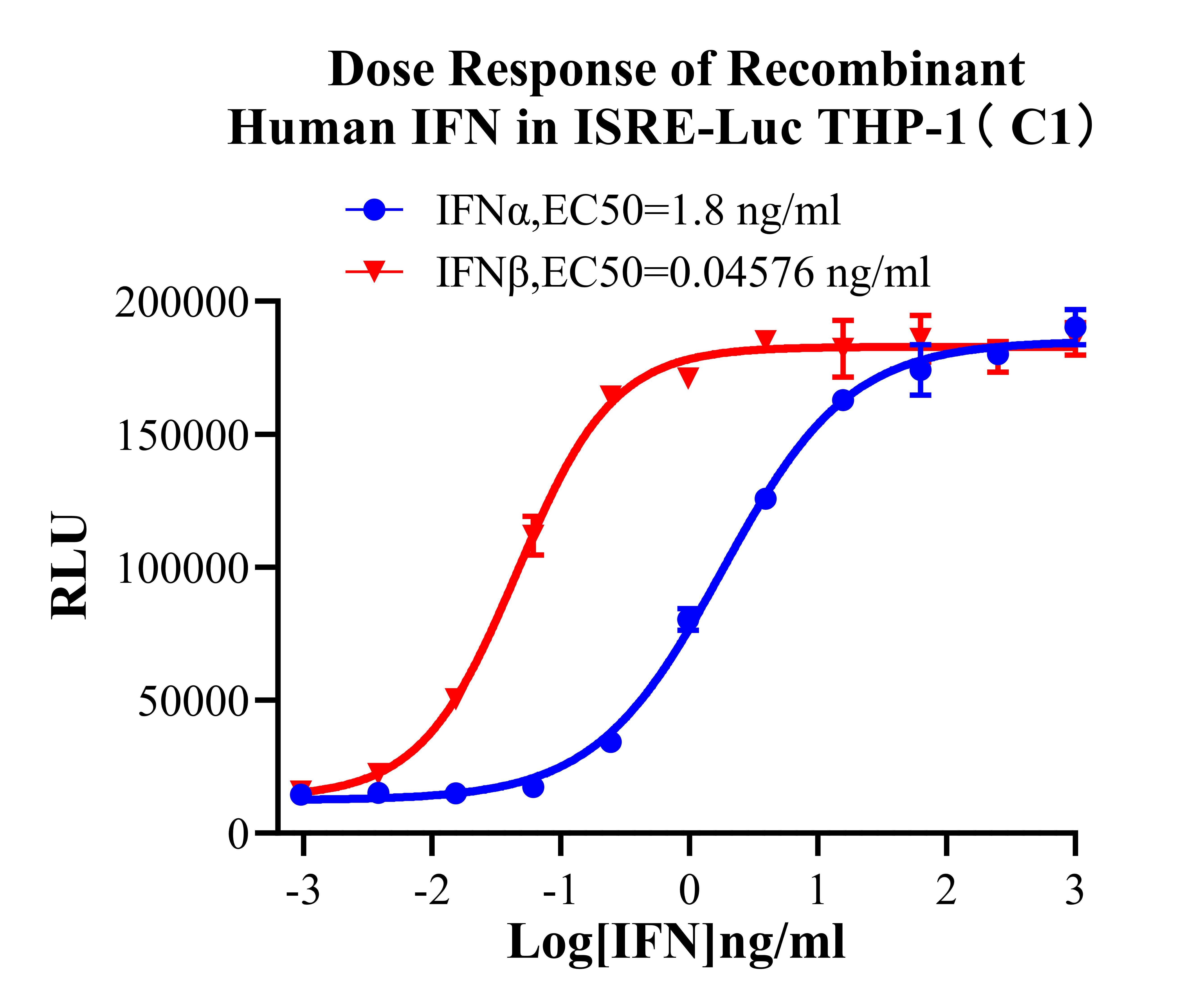 ![]() Figure 2. Dose Response of Recombinant Human IFN in ISRE-Luc THP-1(C1). |