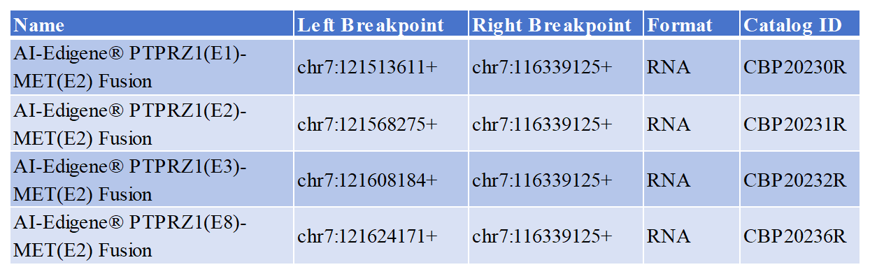 近期,我們上線了融合基因PTPRZ1-MET的標(biāo)準(zhǔn)品,幫助提高PTPRZ1-MET分子診斷的準(zhǔn)確性。