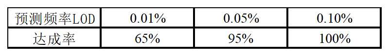 我們可以通過理論計(jì)算來預(yù)測(cè)下可能的檢測(cè)限范圍。當(dāng)控制拷貝在15000(對(duì)應(yīng)50ng input)以內(nèi)時(shí)LOB數(shù)據(jù)是2,2/15000=0.0133%,預(yù)測(cè)檢測(cè)限為0.0200%。