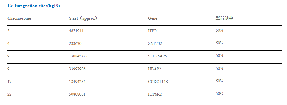 該產(chǎn)品選取公布的位點信息僅來自于31家實驗室大多數(shù)獲得的較為一致的結(jié)果,不排除有一些潛在的未被公布,對一些復(fù)雜的非典型的整合和插入方式(例如一端或部分LTR發(fā)生缺失的整合位點)可能存在漏報;