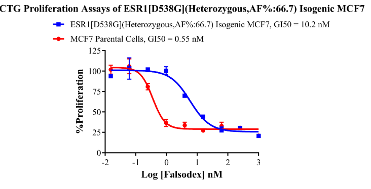 Figure 5. CTG Proliferation Assays of ESR1 [D538G](Heterozygous,AF%:66.7) Isogenie MCF7.