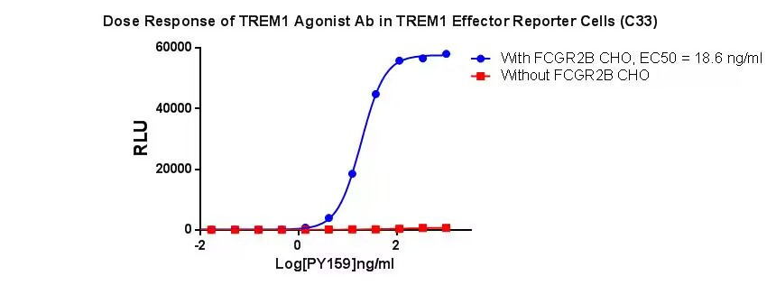 Figure 3. Dose Response of TREM1 Agonist Ab in TREM1 Effector Reporter Cells (C33).