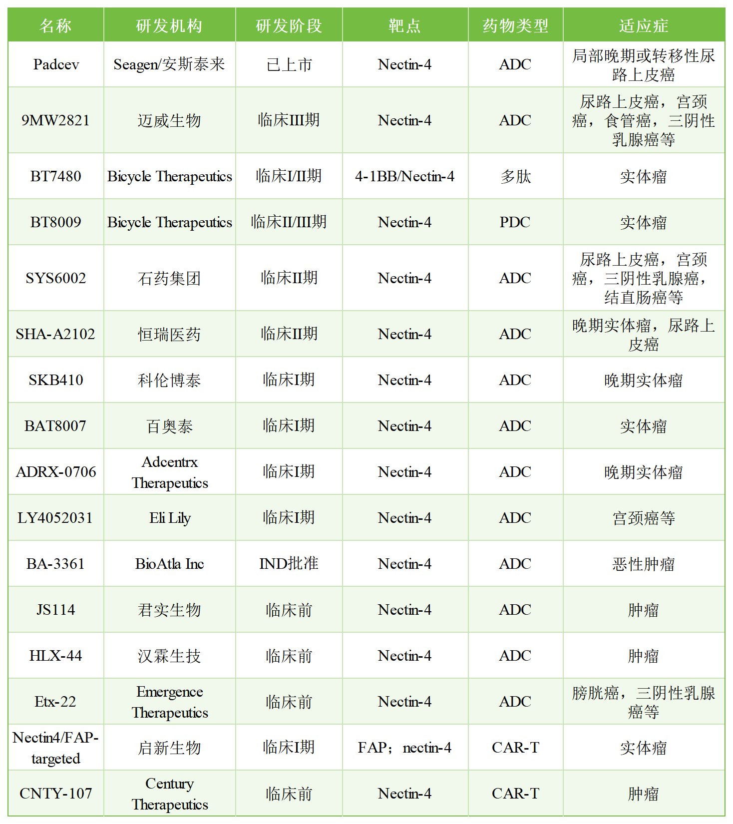 全球第一款已上市的Nectin-4 ADC產(chǎn)品Padcev在2023年銷售收入超10億美金,使得Nectin-4也成為了ADC的新興靶點,越來越多的藥企紛紛布局Nectin-4靶點。目前,Nectin-4靶點的藥物以抗體-藥物偶聯(lián)物(ADC,又叫抗體偶聯(lián)藥物)為主。